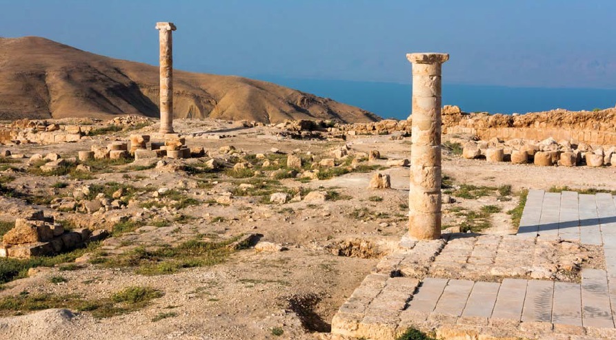 "A machaerusi királyi plota egy teljes dór oszlopának és egy ión oszlopának elméleti rekonstrukciói számítógéppel megjelenítve, a régészeti helyszínen történt technikai megvalósítás előtt. /A két újra felállított heródesi oszlop Machaerusban, a háttérben a Holt-tengerrel és Maszadával" (Forrás: http://www.magyarszemle.hu/galeria/2016_4)