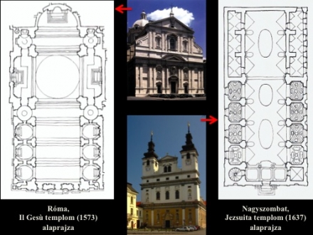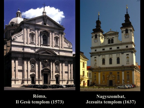 Az alábbi képanyagot a Magyar Képzőművészeti Egyetem II. évfolyamos hallgatóinak tartott művészettörténet előadáshoz állítottam össze, mely ízelítőt nyújt a 17-18. századi Magyarország legjelentősebb egyházi és világi építkezéseiből és szobrászati teljesítményéből. Az ellenreformáció idején a római Il Gesú templom vált a jezsuita megrendelésű barokk templomok prototípusává. A 17. századi Magyarország legelső barokk temploma, a nagyszombati jezsuita templom (1637) is ezt a mintát követte, kiegészülve a magyar barokk templomokra oly jellemző homlokzati két toronnyal, mely osztrák hatás eredménye.