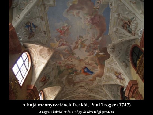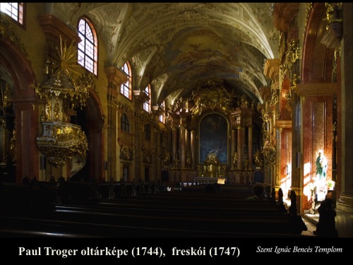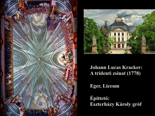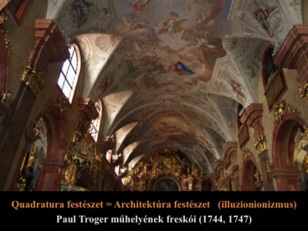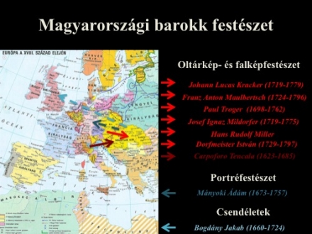 A Magyar Képzőművészeti Egyetem II. éves hallgatóinak tartott előadás képanyaga a magyarországi barokk festészet gyöngyszemeit tartalmazza. A 17-18. századi épület-dekorációk osztrák és lombard mesterek munkái. Hazánkban dolgozott Franz Anton Maulbertsch - kinek nevéhez a sümegi plébániatemplom kifestése fűződik - vagy Johann Lucas Kracker, az egri Líceum könyvtártermében látható bravúros Tridenti zsinat mennyezetképével sokakat lenyűgöző festő.