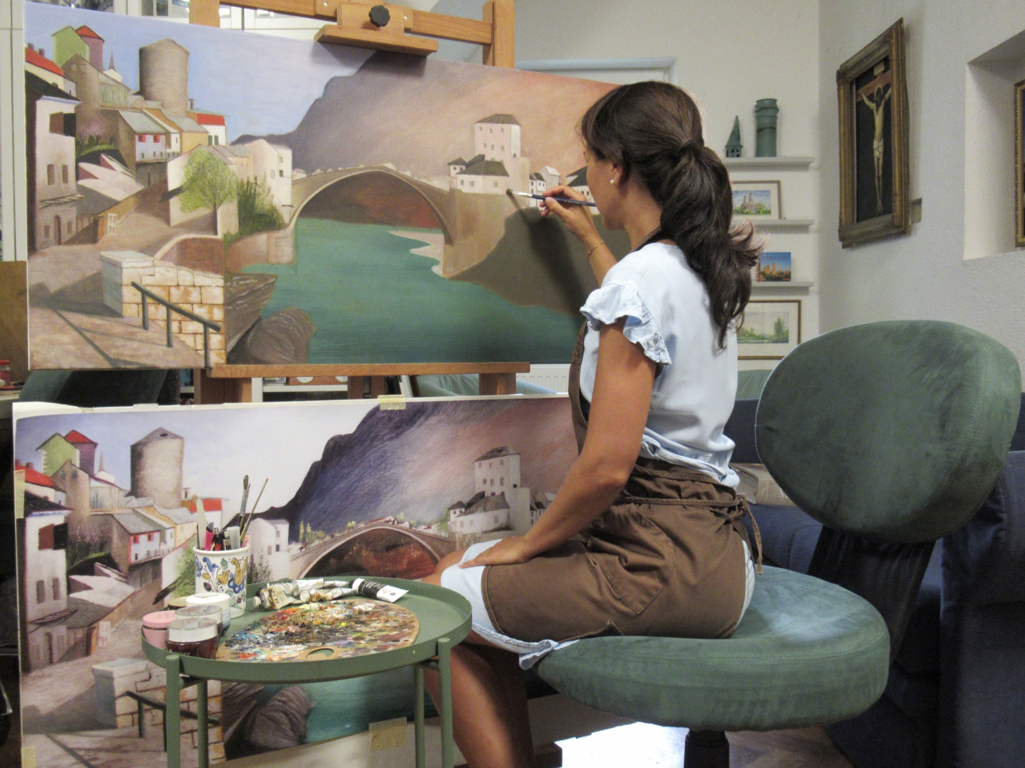 Csontváry Kosztka Tivadar Római híd Mosztarban (1903) című képének másolatát megrendelésre készítettem 2022 júniusa és októbere között. A munka sok elmélkedésre adott lehetőséget, ezért ecsettel a kezemben beléptem a képbe, átkeltem a hídon, majd zarándokútra indultam, - de nem a "cédrusokhoz Libanonba", hanem - a Mostartól 20 km-re fekvő, Élő Vizet forrásozó Medjugorjéba.