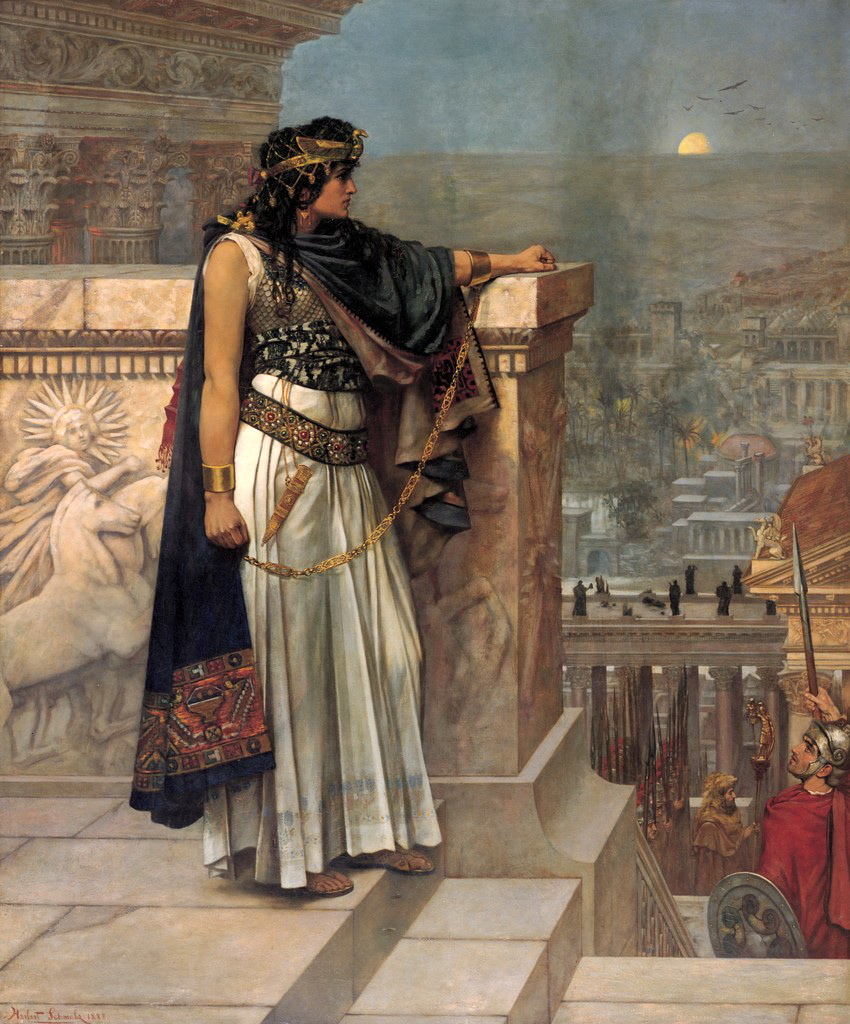 Palmyra szépséges királynője, Zénobia meghódította a római Közel-Kelet nagy részét. Antiochiánál elszenvedett veresége után fogolyként vonult fel Aurelianus császár diadalmenetében. Herbert Gustave Schmalz, angol preraffaelita festő képén még egy utolsó pillantást vet városára, melynek létezéséről sokáig csak a történeti feljegyzésekből tudhattunk. Palmyra 1751-ig aludta mély álmát, míg Robert Wood el nem jutott a romokig. Ennek a városnak volt szerelmese Hálad Aszaád régészprofesszor is, akit 2015. augusztus 18-án fejeztek le a dzsihádisták, majd többezer éves műemlékeket is elpusztítottak.