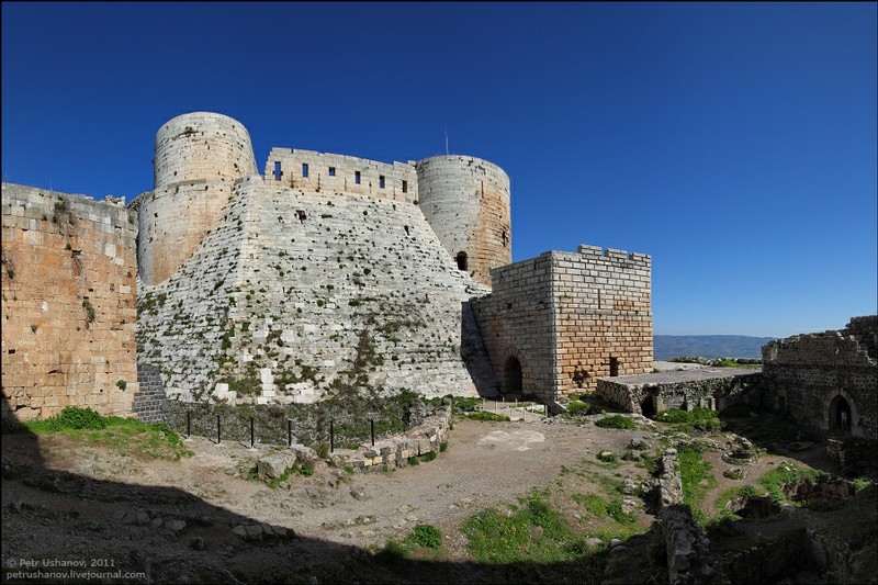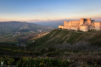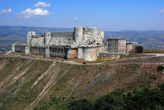 Krak des Chevaliers (keresztes lovagi erőd) a legnagyobb és legjobb állapotban megmaradt szíriai keresztes várrom, mely a Johanniták főhadiszállása volt. II. András magyar király rendszeres adományával támogatta a vár építését és a vár védőinek ellátását, miután ott járt 1218-ban. I. Eduárd angol király a kilencedik keresztes hadjárat idején, 1272-ben látta az erődöt és mintaként használta a saját, angliai és walesi várai építéséhez. A keresztesek 162 éves uralma után, 1271-ben Az-Záher Baibarsz mameluk szultán seregei foglalták el. Az arabok a várat helyreállították, és új tornyokkal is megerősítették. Krak a szultán helyettesének székhelye lett, ahol jelentős katonai erők állomásoztak." (Forrás: wikipédia) 2013-ban ellenállók foglalták el, és innen lőtték másfél éven át a környező településeket. A háború alatt a vár is komoly sérüléseket szenvedett. A károk felmérésére és a helyreállítás megtervezésére a magyar régész, Major Balázs segítségét kérték, aki a “Szíriai-Magyar Régészeti Misszió (SHAM) vezetőjeként 2007 óta folytatja a Szentföld egyik legfontosabb és legnagyobb keresztes erődítményében, Margatban (Qal’at al-Marqab) komplex kutatási programját önkéntes munkában, kizárólag támogatói segítségével.” (Forrás: https://www.facebook.com/margat.vara/)